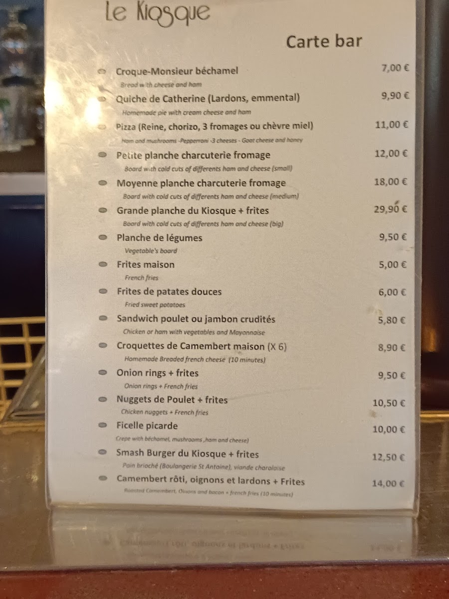 Le Kiosque Menu